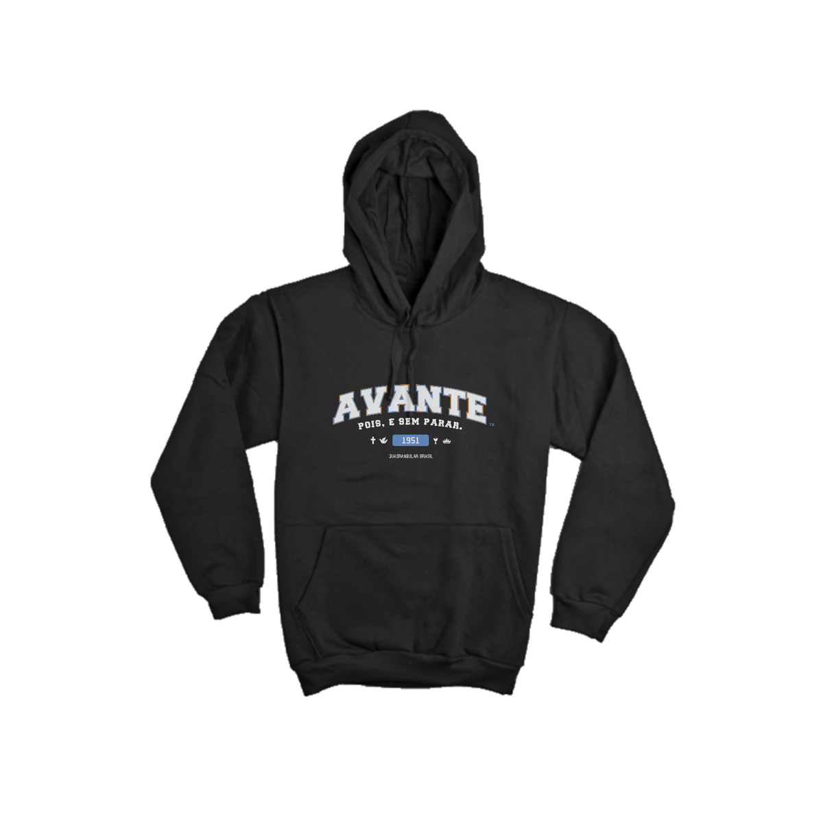 Características: Bolso frontal tipo canguru, capuz com cordão e acabamento confortável, ideal para uso pessoal e corporativo.